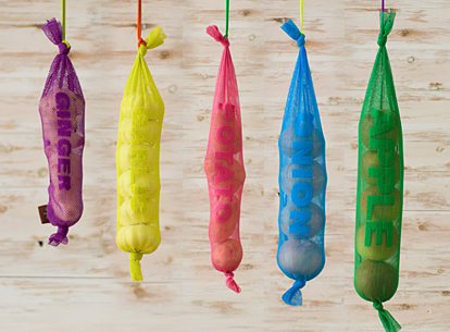 風通しの良い場所に、根菜類を吊るしておくためのネットです。野菜に合わせて5種類を用意しました。